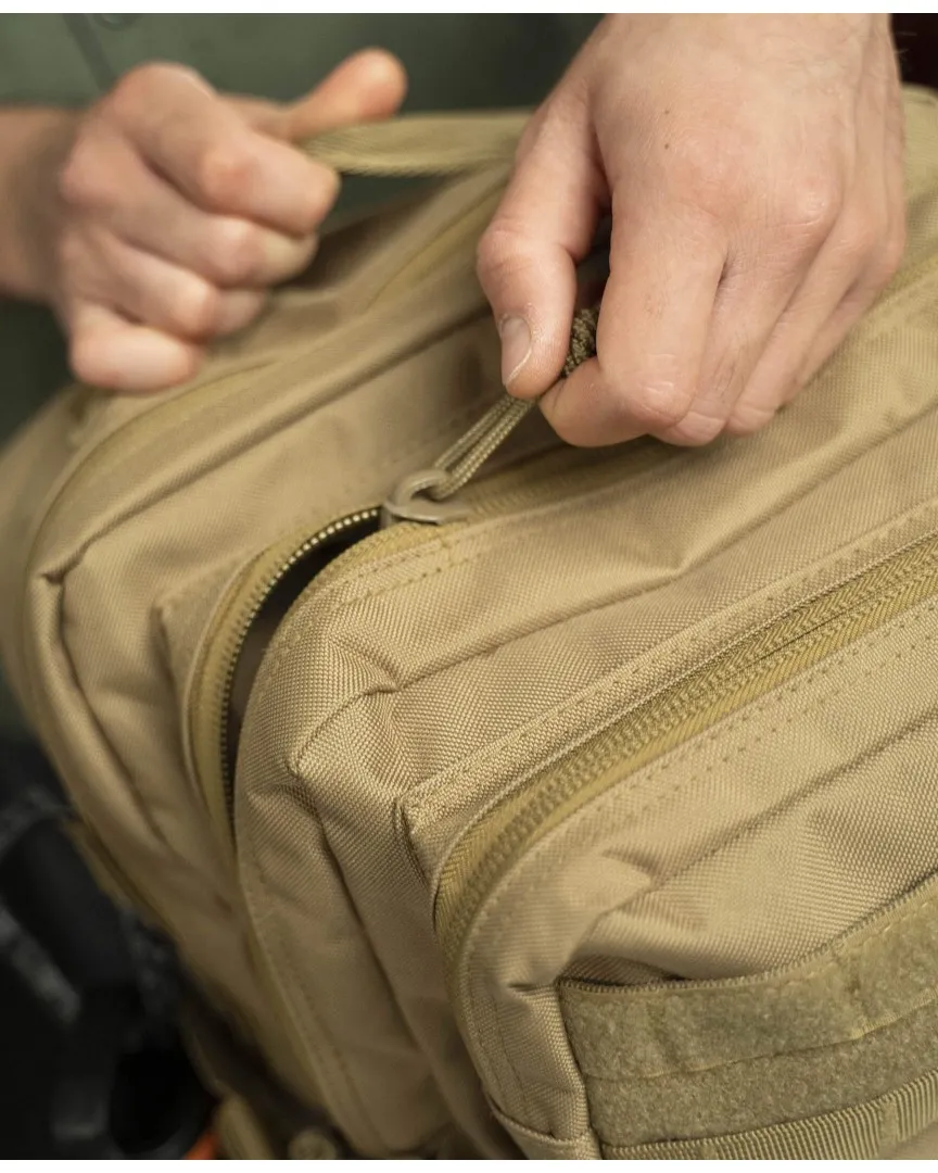 The Assault Large Backpack is engineered for professionals and outdoor enthusiasts who require a modular and resilient gear platform. Constructed from high-tenacity 100% 600D Polyester, this pack is built to withstand extreme wear and tear in the harshest environments. With a substantial 51-liter capacity, it provides ample space for mission-critical gear and personal belongings. The Assault Large Backpack integrates the globally recognized MOLLE system, allowing users to customize their loadout with additional pouches and accessories. For long-term comfort, it features an adjustable waist belt and chest strap that ensure proper weight distribution and stability under load.